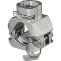 ■パイプへの取付は工具不要。本製品でパイプを挟み、ロックピンを差し込んだ後、ネジを回してパイプにしっかり固定するだけでセットが完了します。